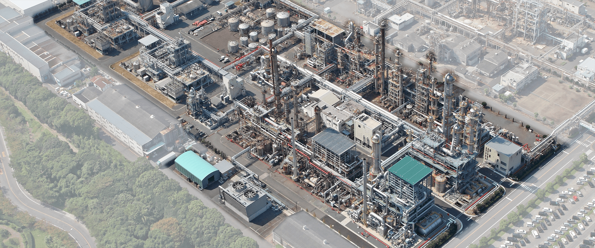 大分石油化学コンビナート内の南端に位置する大分工場は、当社グループのアクリル製品事業の起点となるアクリル酸を生産しています。