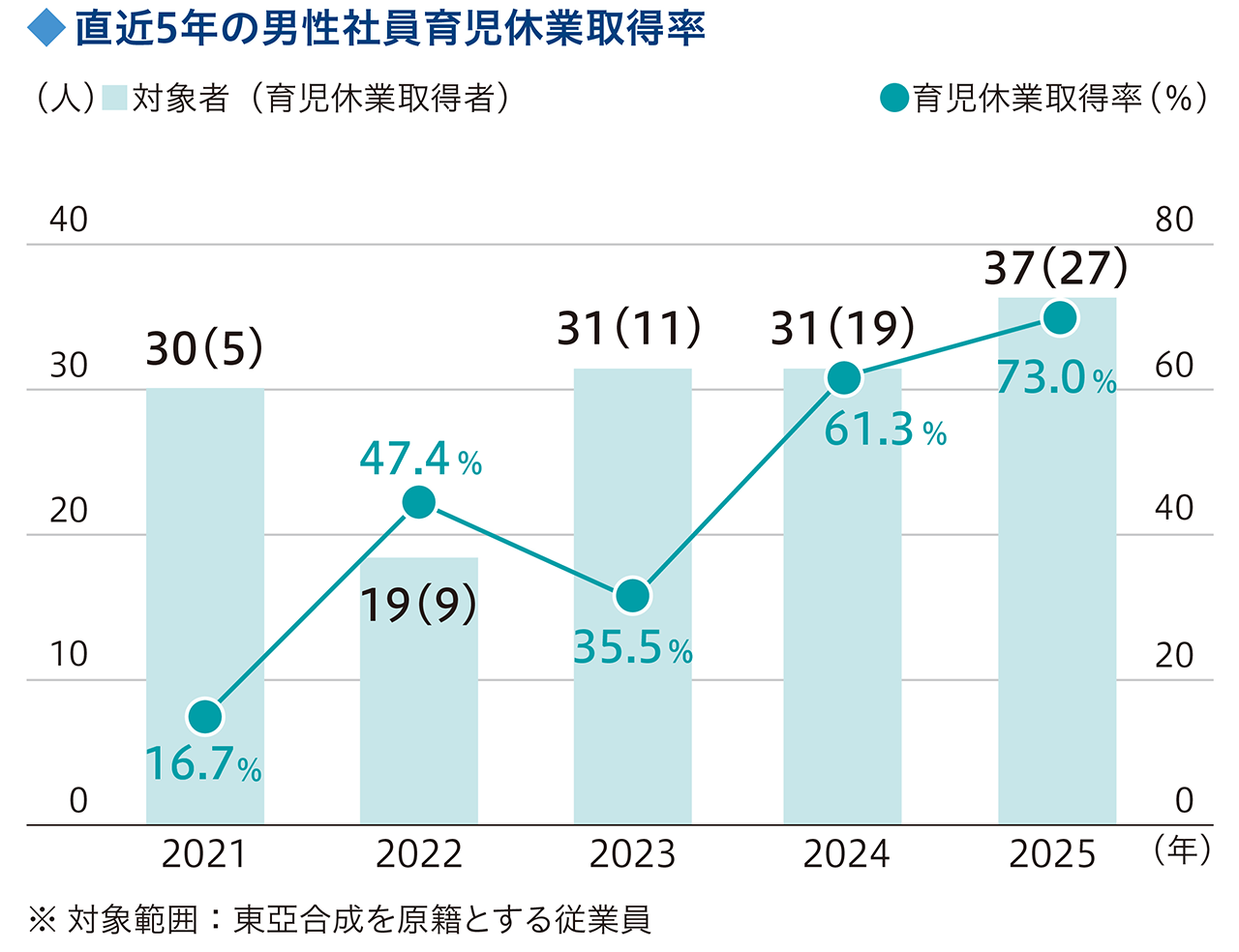 | 育休取得率※2 | (%) | 20.0 | 41.2 | 60.0 | 50.0 | 63.9 |
