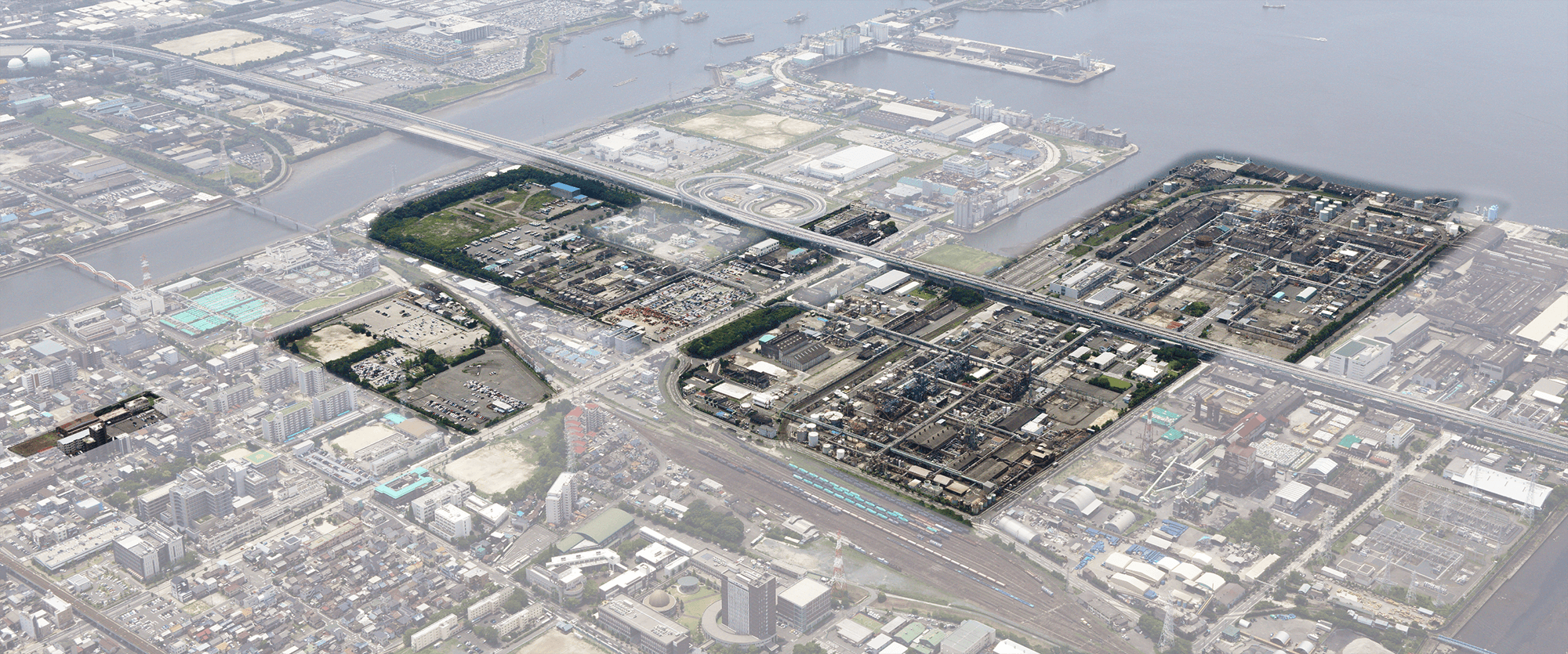 名古屋港南部臨海工業地帯に位置し、交通アクセスや物流面で優れ、都市の活気と産業の集積が融合した地域です。