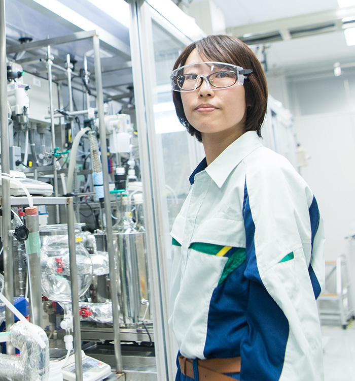 アクリルポリマーの製品開発に挑戦する。大きなテーマを数人のチームで担当することが多く、仲間と協力して取り組んだ。なかなか思ったようなものができないこともあったけれど、いくつかの重合法を経験したことで、自分のスキルアップにつながったと感じている。